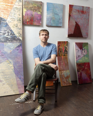 In his work, Jan Dickey explores the natural tendencies of paint - its flow, layering, cracking, and peeling - using earth-based materials like egg, casein, oils, and animal glues. By sourcing and preparing his own pigments from materials such as cochineal, black walnut, and turmeric, he embraces unpredictability, allowing compositions to evolve spontaneously.