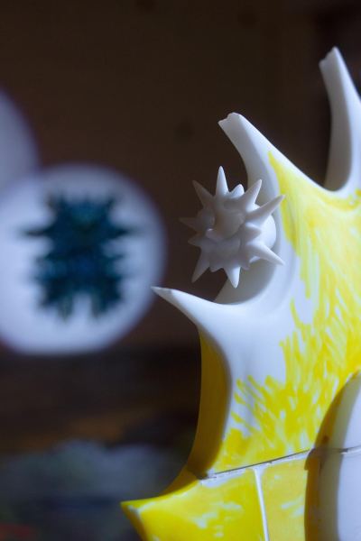 Spunde ir pazīstama ar savām rūpīgi izstrādātajām instalācijām, kurās kinematogrāfisku kompozīciju digitālās drukas, bieži apvienotas ar skulpturāliem elementiem, saplūst, lai izpētītu, kā personiskā uztvere saduras ar kolektīvām struktūrām. “Vingrinājumu laukā” viņa attālinās no sev raksturīgā digitālo zīmējumu izmantojuma un pievēršas skulpturālai formai, drosmīgi eksperimentējot ar lielformāta 3D drukas iespējām. Šīs pārmaiņas nav tikai tehniskas, bet arī konceptuālas. Mākslinieces iepriekšējie darbi bieži vien pievērsās tādām tēmām kā psiholoģiskais sabrukums, digitālā pārslodze un emocionālā disonanse, bet “Vingrinājumu lauks” pēta emocionālās atveseļošanās iespējamību.