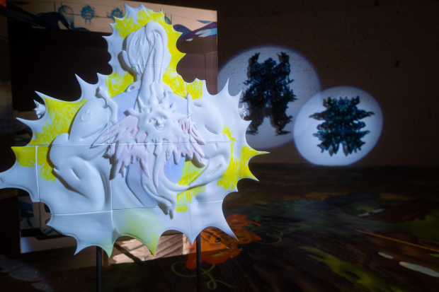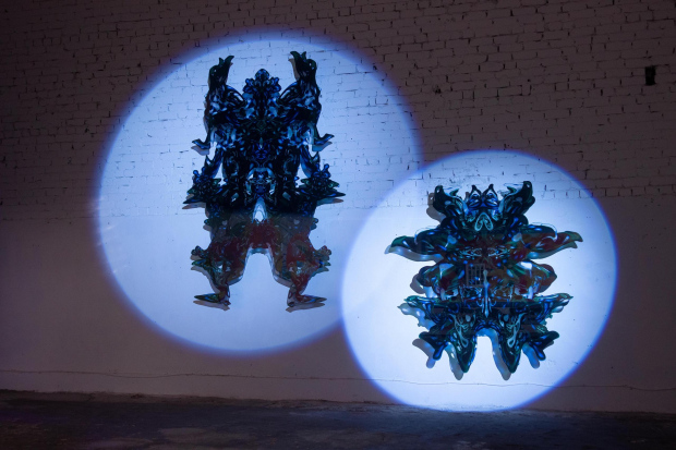 Kaļiņins draws a line between the period before and after the Enlightenment. On one side he refers to the time when the divine was considered the single source of light. On the opposite side, to the period after the Enlightenment when light became a multi faceted reality described technologically and scientifically by, amongst others, Goethe and Newton. In “Weißer Saal” Kaļiņins presents paintings but also takes the opportunity to consider the effect of light, color, reflection and absorption in a context that is simultaneously hyper real and abstract.