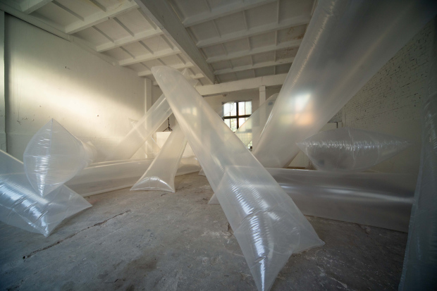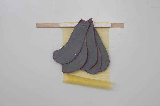 Krauze-Slucka’s choice of material, industrial pressed wool felts, plays an especially important role in the theme of the show. Marilyn Frye takes us back to the root of the word oppression, which is from press: “The press of the crowd; pressed into military service; to press a pair of pants; printing press; press the button. Presses are used to mold things or flatten them or reduce them in bulk, sometimes to reduce them by squeezing out the gases or liquids in them. Something pressed is something caught between or among forces and barriers which are so related to each other that jointly they restrain, restrict or prevent the thing’s motion or mobility. Mold. Immobilize. Reduce.” (1983,54)