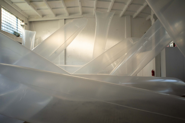 “Sheet on Sheet” is an installation where the beginning and end can be the same place and the space in between is as endless as a loop. It is an invitation to lightness, a contemplation of time, space and movement.