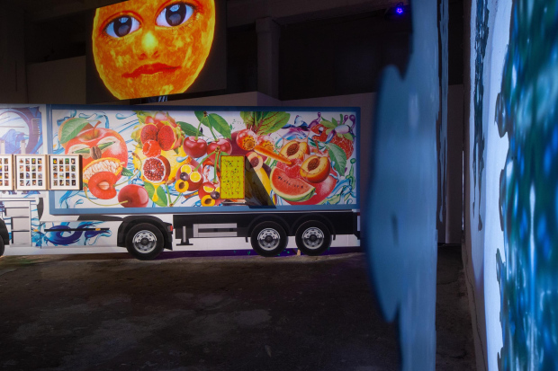 In Under the Sun, the works of Eric Giraudet de Boudemange, Agnieszka Polska, Līga Spunde, and Agate Tūna form an entangled universe. Polska’s video The New Sun casts its presence across the exhibition.Its childlike celestial narrator drifting between melancholy and absurdity as it addresses Earth through surreal monologues, love poems, and prophetic warnings. The sun speaks from above, simultaneously witness and participant, offering a poetic lens on crisis, responsibility, and the fragile cycles of life on Earth. Around this work, Giraudet and Tūna each developed new work that extend their ongoing artistic inquiries while responding to the context of TUR and the themes of the exhibition. Giraudet’s installation centres on two monumental truck forms, both sculptural objects and conceptual vehicles. They anchor an allegorical inquiry into movement, extraction, and exchange, forming a framework of objects and references that evoke the systems through which not only goods, but also values and beliefs, are transported across landscapes. Giraudet’s work reflects on how agricultural cycles shape our relationships to labour, nourishment, and survival, offering a layered perspective on the infrastructures that sustain, and strain, contemporary life.