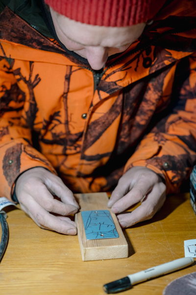 The exhibition invited visitors to return to TUR over the course of its run and encounter the work at different moments in time. Ozoliņš was present as he carries out his daily practice, while the markings inside the structure continued to accumulate and grow more complex. At the same time, additional works entered the exhibition space, each one shaped by repetition, discipline, and duration. These objects, presented within the conventions of the art space, are available for purchase, entering circulation as artworks beyond the exhibition. They stand as tangible outcomes of an ongoing process, holding together use, memory, and value within a single gesture.