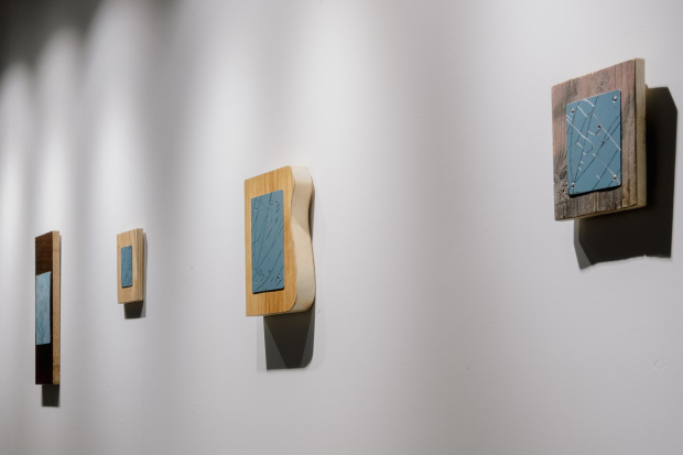 As new works emerge from this process, they become part of the wider exhibition at TUR. Ozoliņš brings them out of the contained, warm interior where the “object of thought” takes shape and places them into the larger exhibition space. Hung on the wall, these works appear as the visible results of sustained labor. They are formed only once primary needs such as warmth and shelter are met and carry with them traces of the process that produced them. In this way, each work remains closely connected to the conditions of its making.